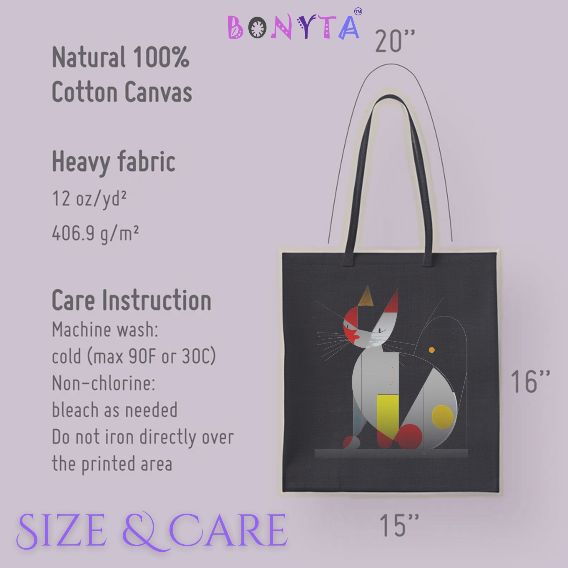 As part of BONYTA.Online's "Cats & Beauty" collection, this tote embodies a blend of creativity and elegance, bringing a fresh perspective to cat-themed accessories. It’s an ideal choice for art lovers and cat enthusiasts who enjoy unique, eye-catching designs.