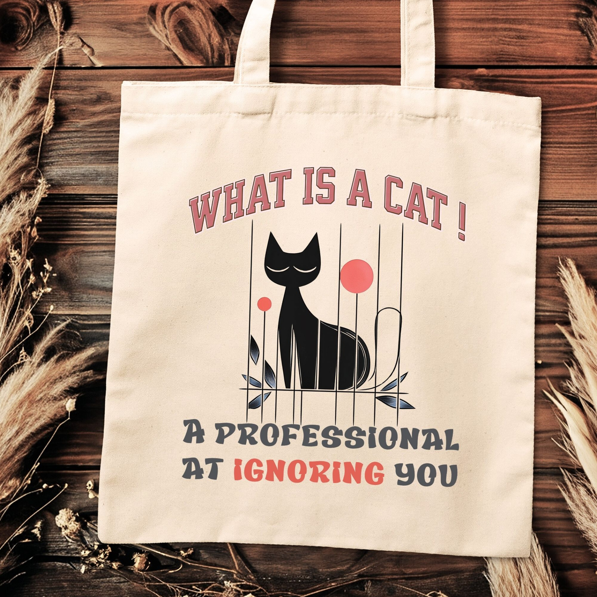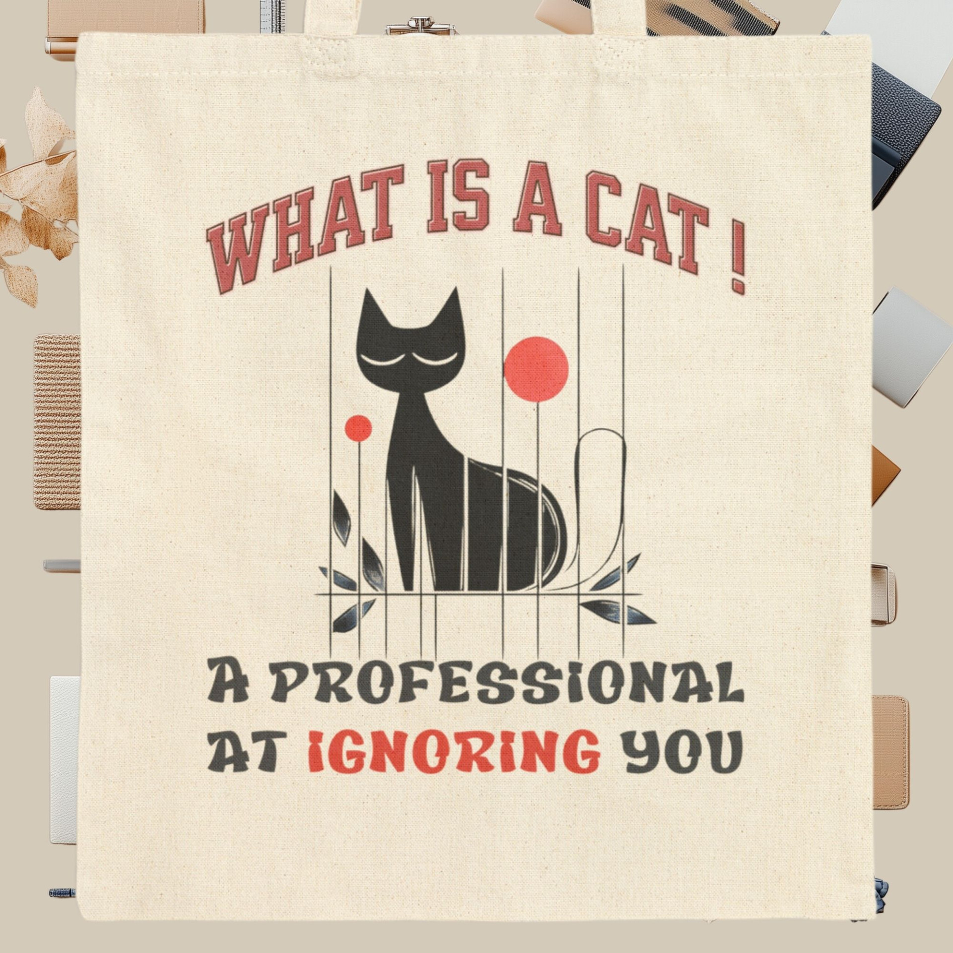 cat tote bag, professional cat, funny cat gift, cat lover tote, humorous tote, eco-friendly bag, cotton canvas, reusable tote, aloof cat, gift for her, everyday tote, canvas bag, BONYTA tote
