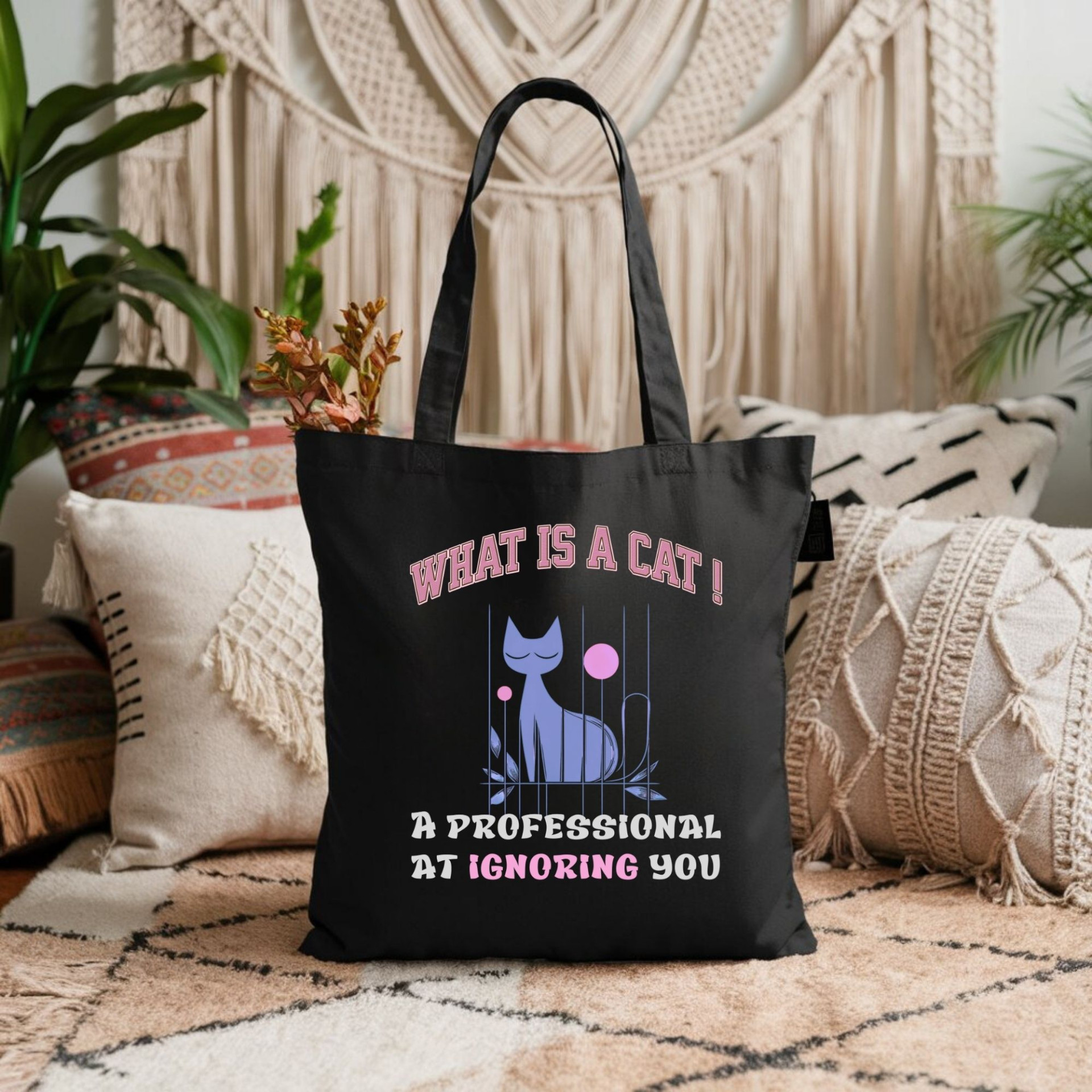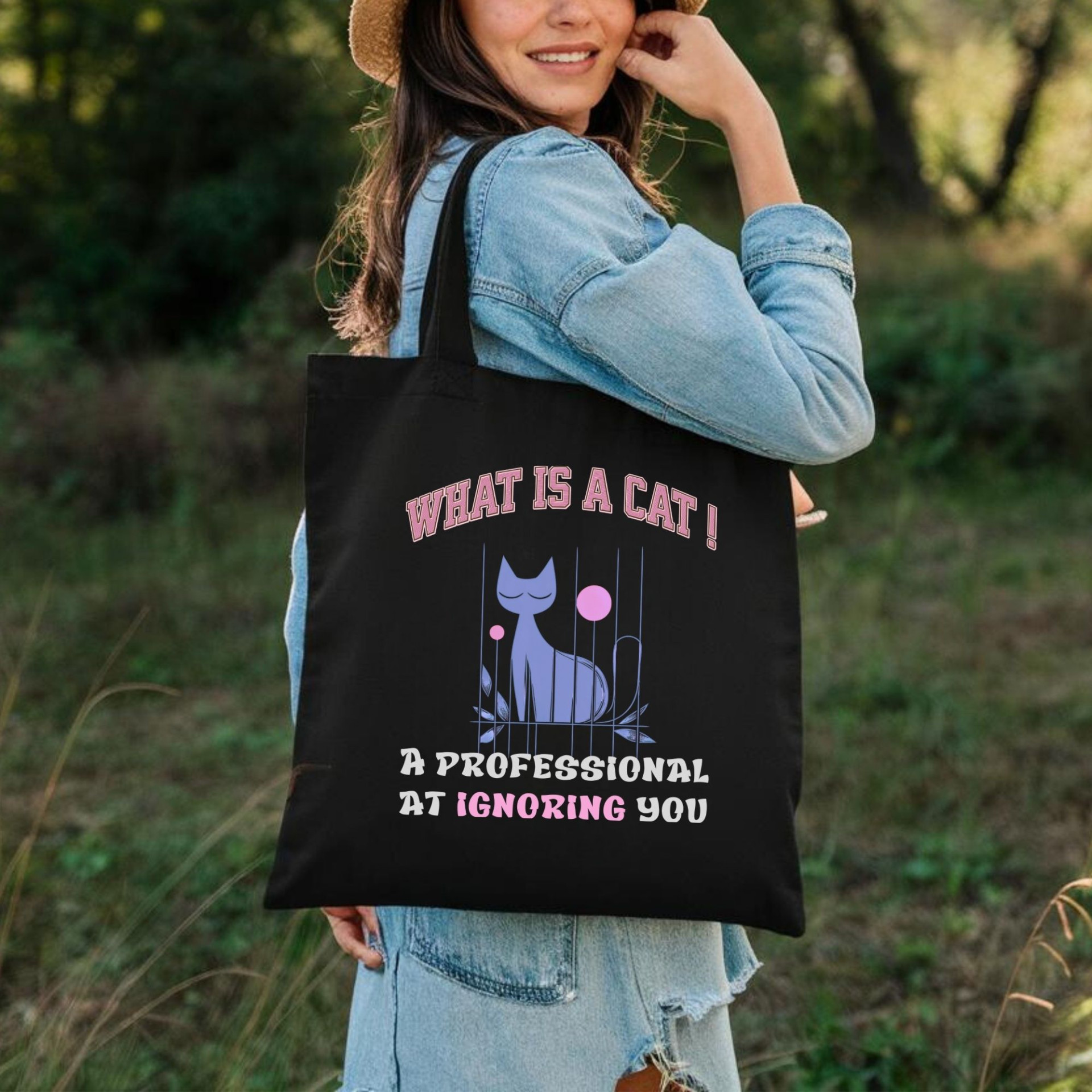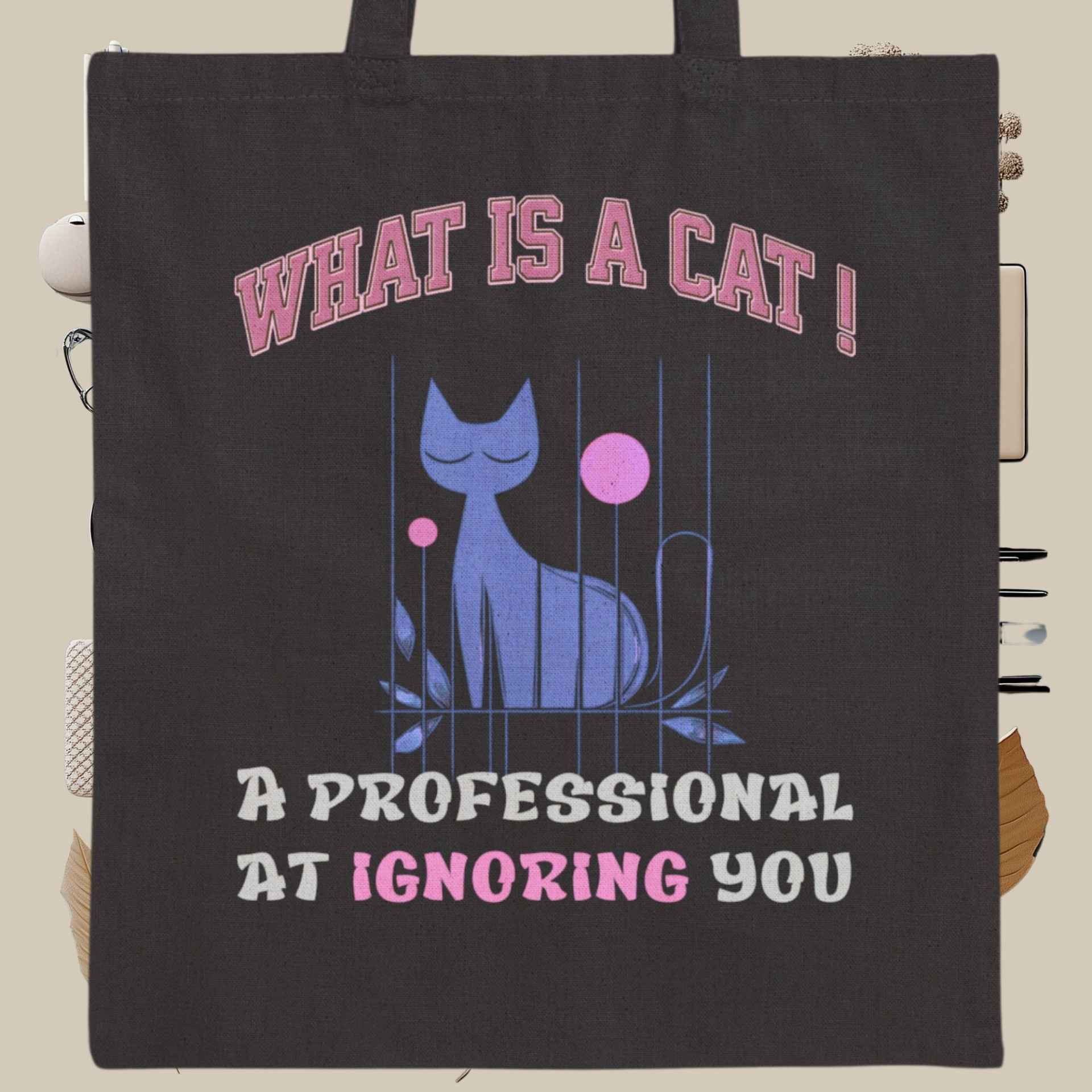 Embrace the humorous side of cat ownership with this tote bag that perfectly sums up a cat’s expertise: “A Professional at Ignoring You.” Designed for cat lovers who appreciate their feline friends' independent spirit, this tote is a fun and functional way to carry your essentials. Spacious and sturdy, it’s perfect for everyday use, adding a touch of cat-inspired humor to any outing.